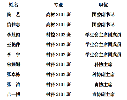 团学组织主要学生干部: