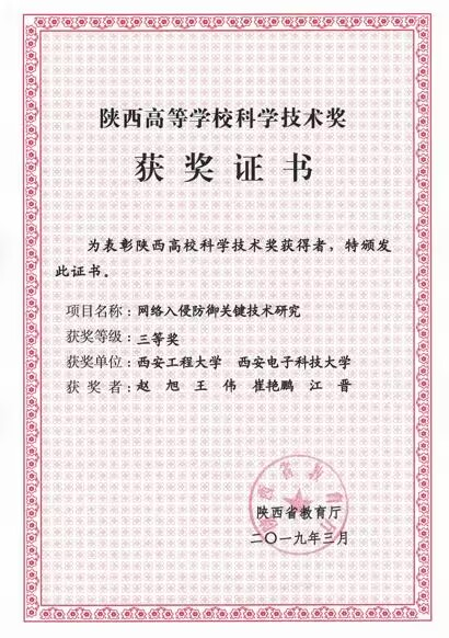 陕西高等学校科技三等奖 |