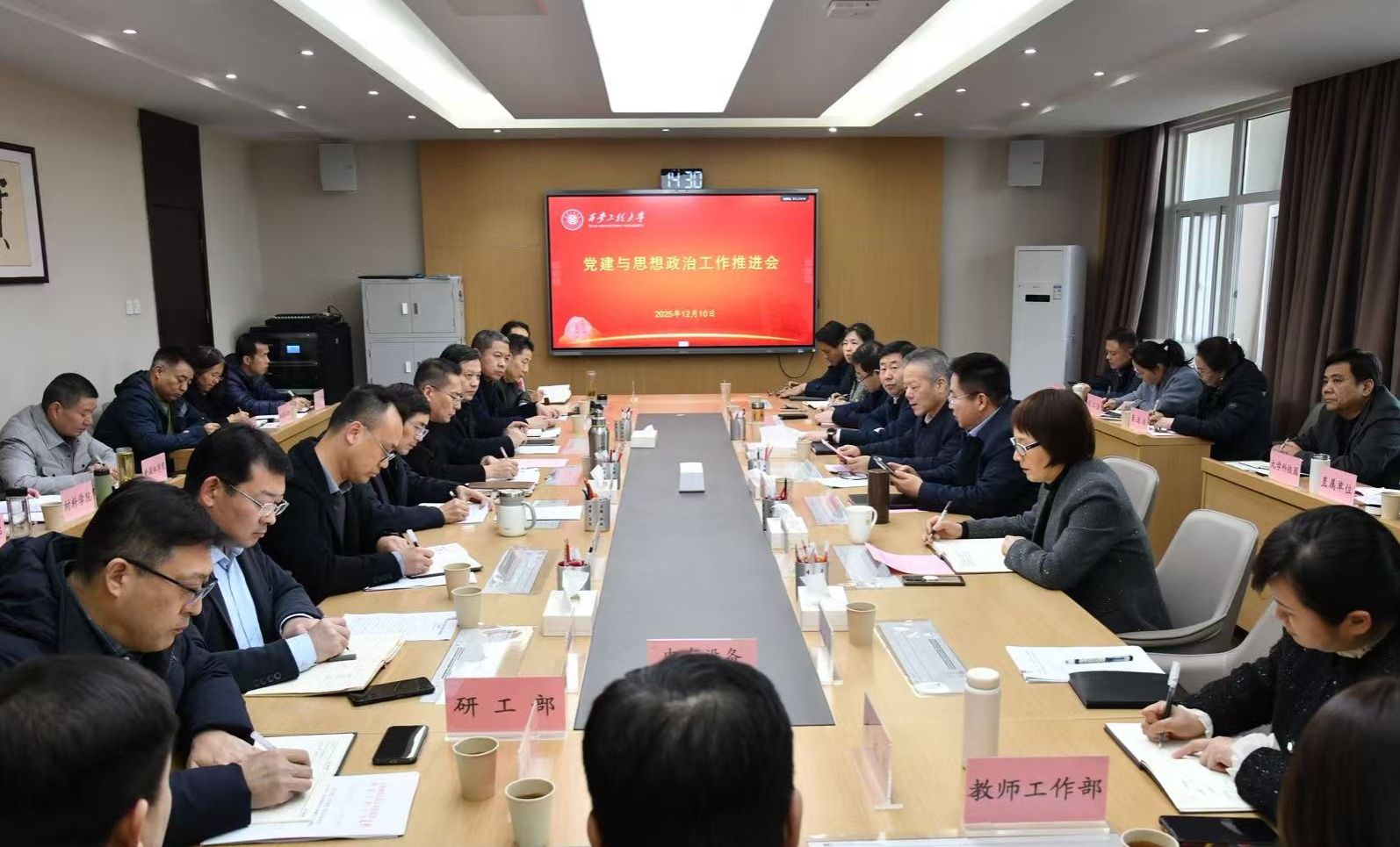 12月10日,我校在临潼校区召开党建与思想政治工作推进会。校党委书记张志昌主持会议并讲话,校领导井浩、殷永建、张美忠出席会议,学校各党群部门负责人及院(部)级党组织书记参加了会议。纺织科学与工程学院党委、星空娱乐游戏特色介绍党委、星空娱乐游戏公会党委、理学院党委、计算机科学学院党委和学生工作部(处)等单位负责同志,就党建与思想政治工作开展情况进行了交流发言。井浩、殷永建、张美忠分别结合分管工作,就加强党的政治...