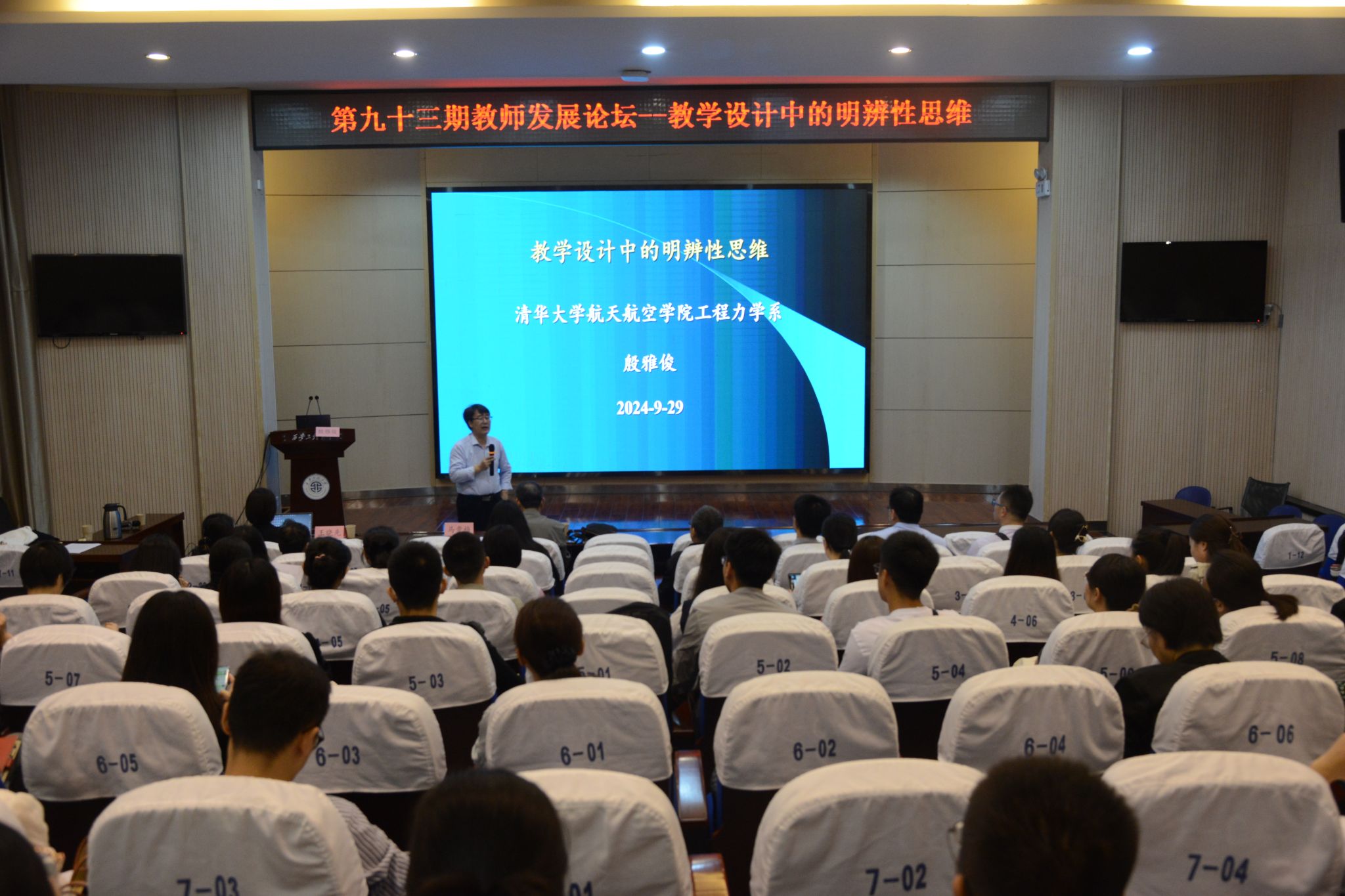 9月29日上午,我校在金花校区西纺报告厅举办第九十三期教师发展论坛活动,邀请清华大学航天航空学院教授殷雅俊作《教学设计中的明辨性思维》专题报告,相关学院近130人参加活动,活动由人事处处长王晓先主持。