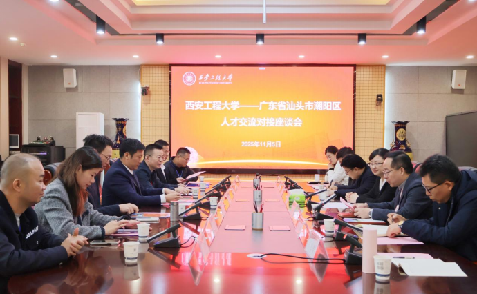 11月5日上午,我校与汕头市潮阳区人才交流对接座谈会在金花校区第三会议室举行,汕头市潮阳区委副书记、区长查晶晶一行8人,我校副校长夏蔡娟,国内合作与校友工作处、大学科技园、科技研究院、招生就业工作处、纺织科学与工程学院、服装与艺术设计学院、新媒体艺术学院等单位负责人及教师代表等15人参会。
