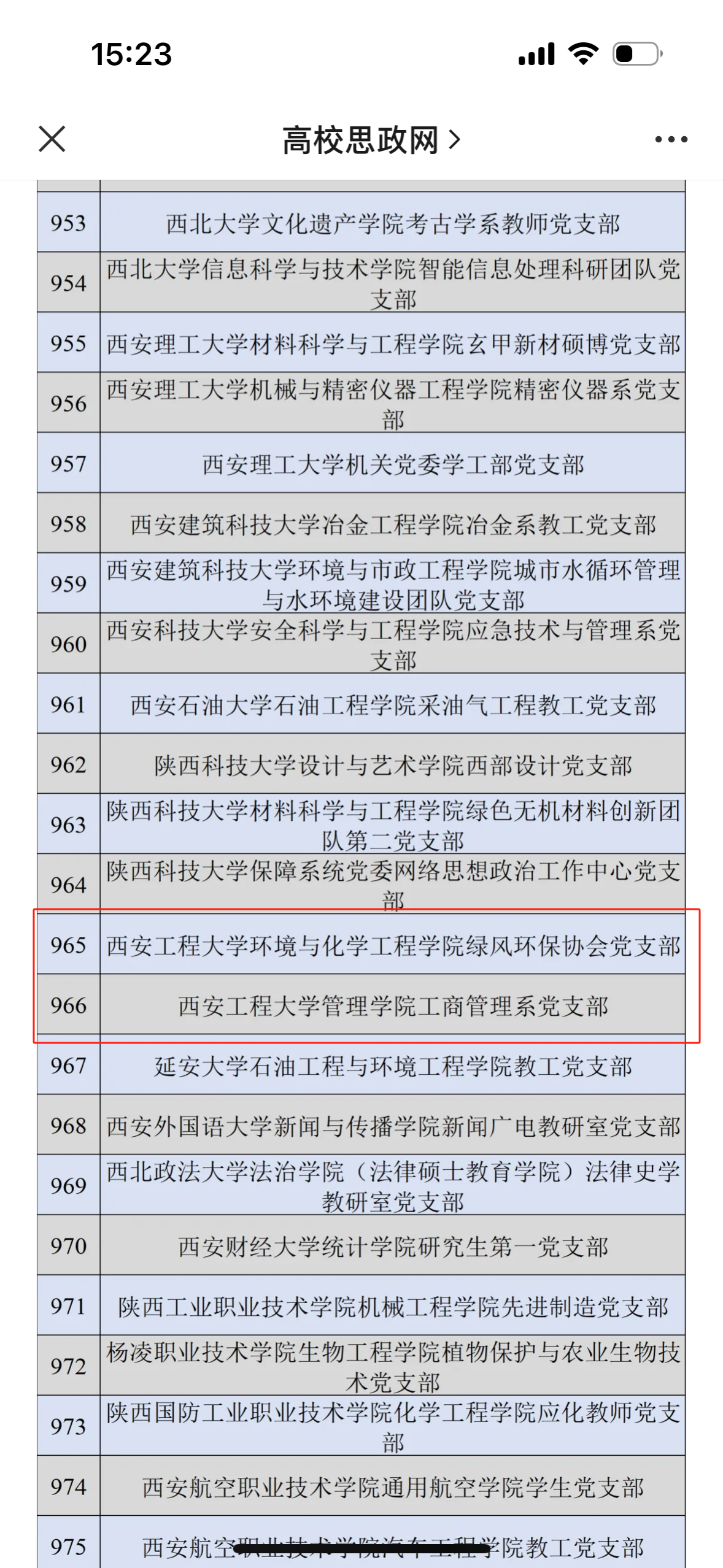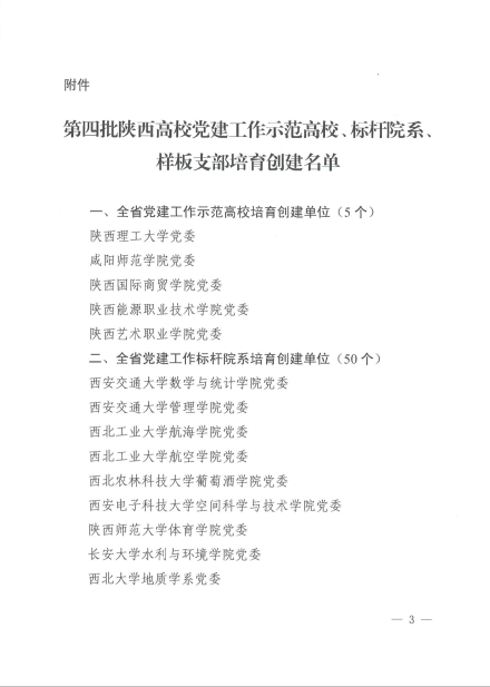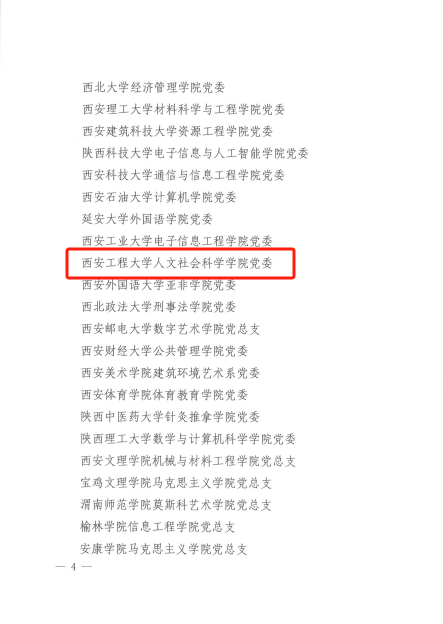 近日,教育部思想政治工作司公示了第四批新时代高校党建示范创建和质量创优工作结果,我校星空游戏官方宣传工商管理系党支部、环境与化学工程学院绿风环保协会党支部获评“全国党建工作样板支部”培育创建单位。在省委教育工委公布的第四批陕西高校党建工作示范高校、标杆院系、样板支部培育创建名单中,我校5个基层党组织位列其中。其中,人文社会科学学院党委入选全省党建工作标杆院系培育创建单位名单,环境与化学工程学院绿风环保协会党支部、马克思主义学院“梦桃精神 代代相传”全国纺织思想政治教育研究基地师生党支部、星空游戏官方宣传工商管理系党支部、纺织科学与工程学院纺织科学与工程黄大年式教师团队党支部入选全省党建工作样板支部培育创建单位名单,学校党建“双创”工作再获佳绩。