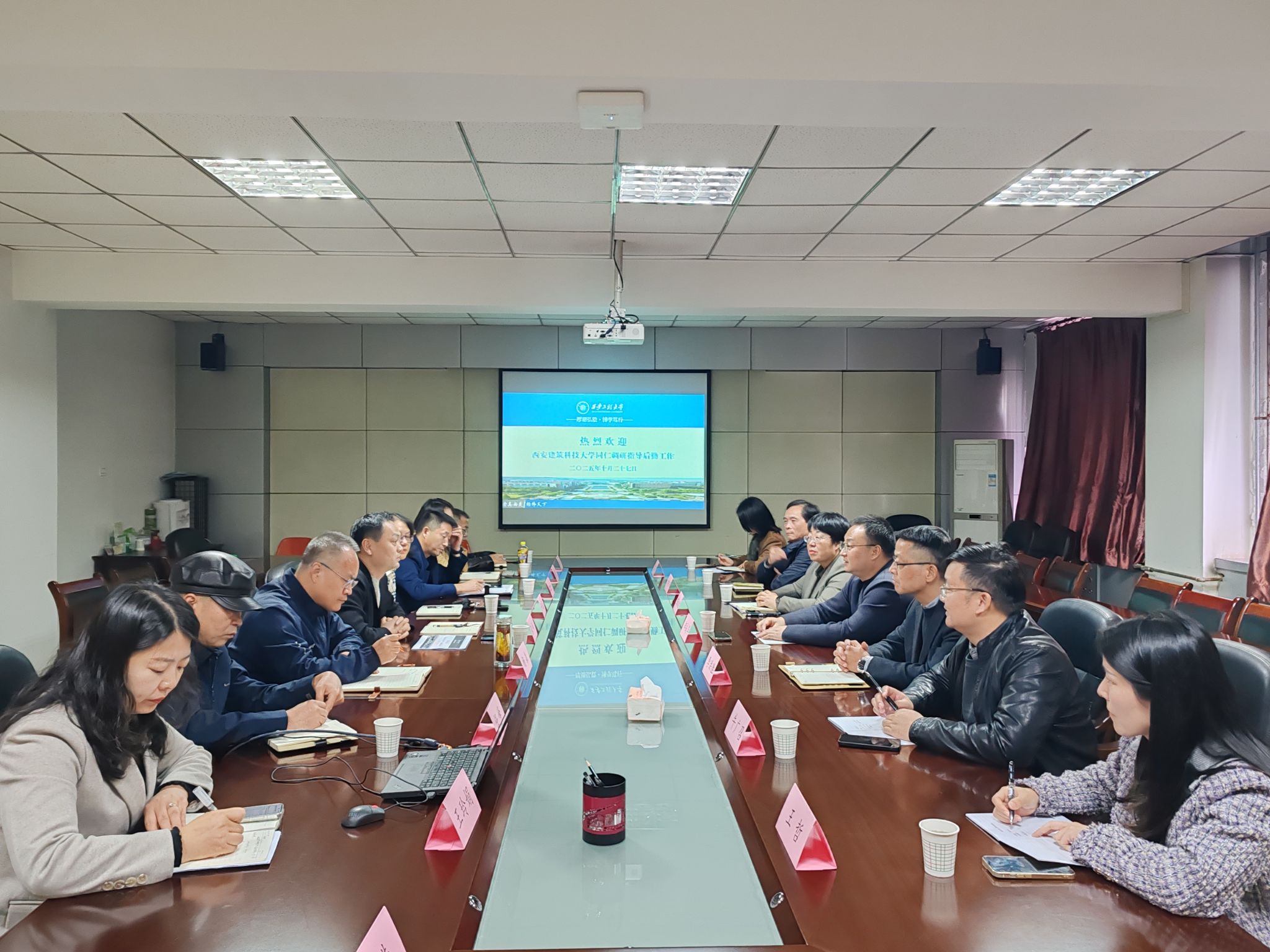 10月27日下午,西安建筑科技大学后勤服务中心总经理郑成华、党总支书记李洪胜一行7人来我校开展调研交流。我校后勤管理处(集团)领导班子成员,科室(中心)负责人参加座谈交流。