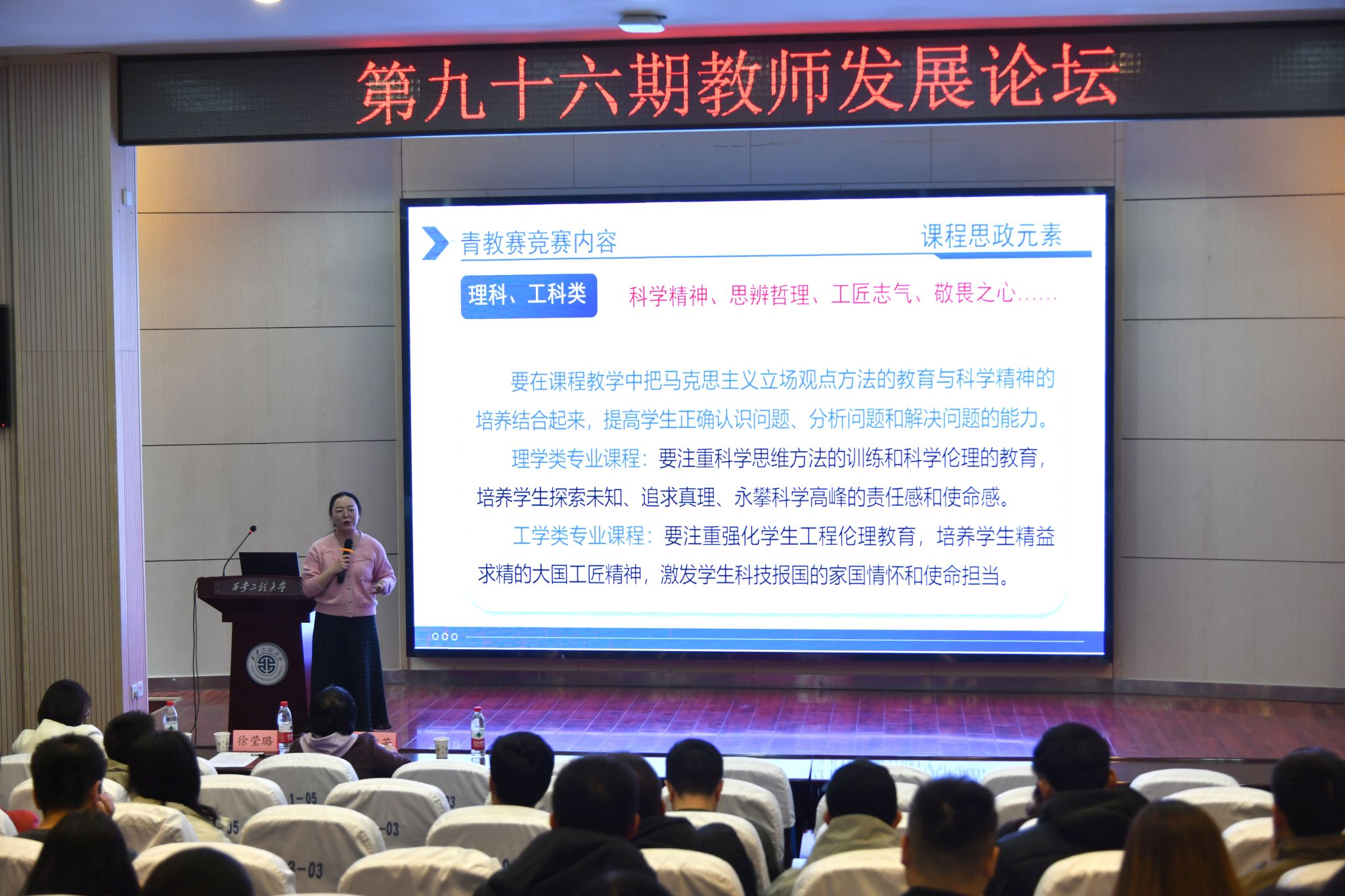 3月19日下午,我校在金花校区举办第九十六期教师发展论坛活动,邀请第七届全国高校青年教师教学竞赛工科组一等奖获得者、西安建筑科技大学土木工程学院徐莹璐老师作《课堂教学探索与实践——第七届全国高校青年教师教学竞赛经验分享》专题报告,14个学院(部)近120人参加活动,活动由人事处副处长马贵梅主持。