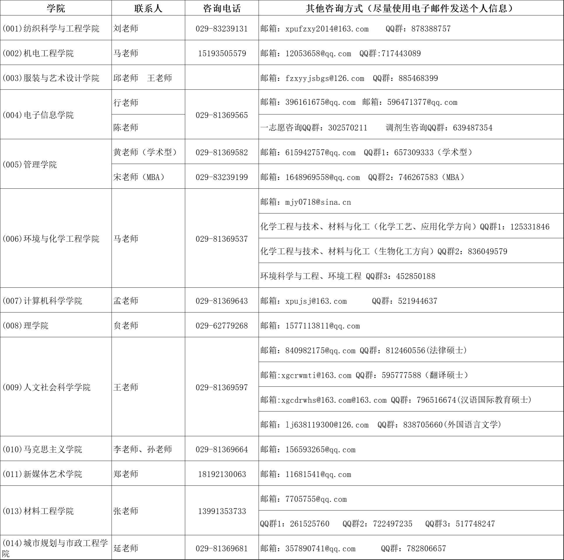 研究生院招生办公室咨询电话:029-81369220