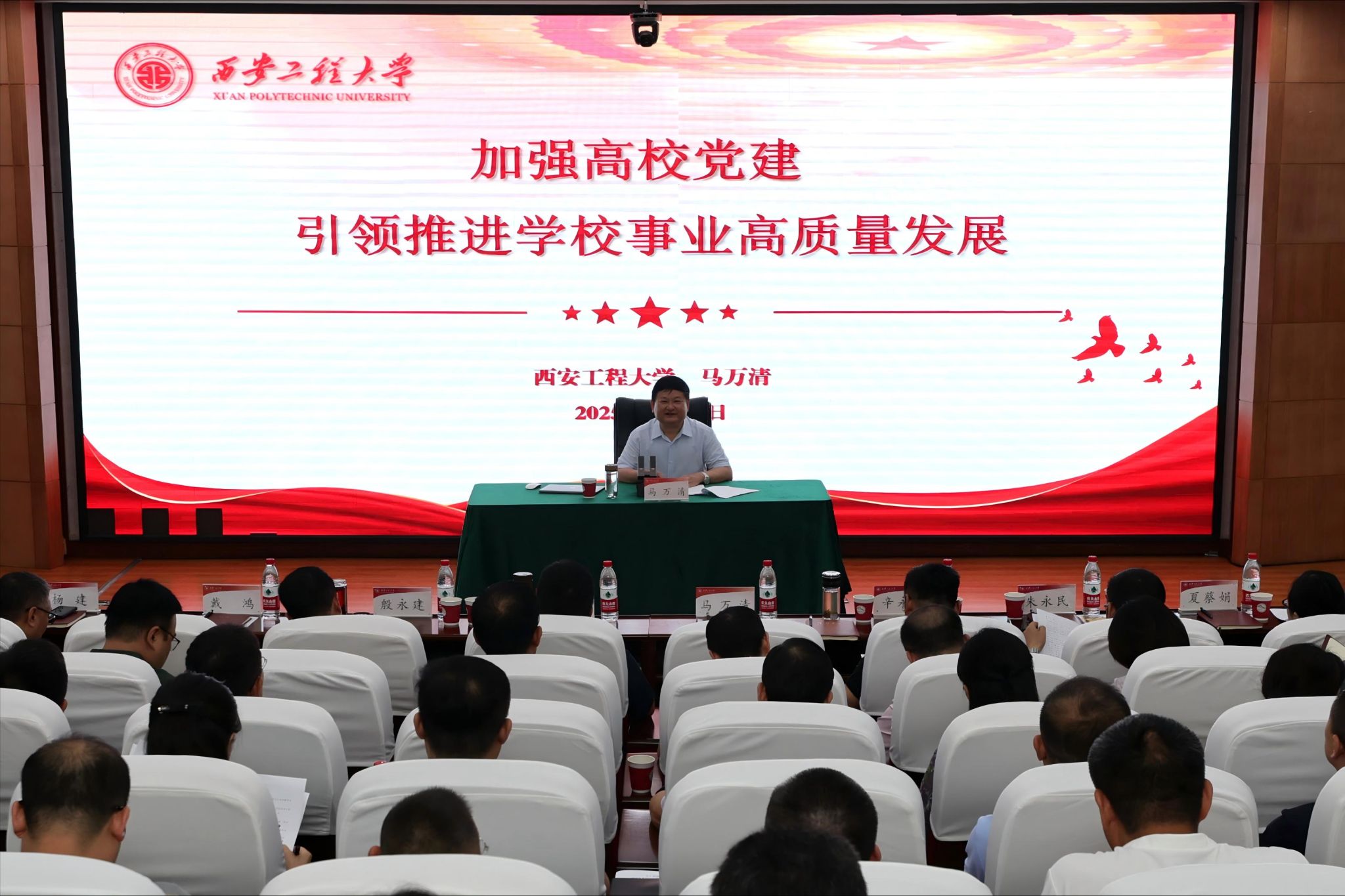 马万清在总结讲话中指出,当前学校仍处于爬坡过坎的关键时期,形势严峻、任务艰巨,要聚势谋远、拓启新程,进一步增强发展规划的战略导向作用,认真评估总结“十四五”规划执行情况、查漏补缺,全力完成既定目标;坚持“谋当下”和“谋长远”相结合、“顶层设计”和“问计于师生”相统一,布局谋篇“十五五”,切实以高水平高质量规划引领学校事业发展。要聚力奋进、再谱新篇,锚定学校第三次党代会提出的“两步走”战略目标和“十大工程”重点任务,撸起袖子加油干,齐心协力向前进,把“规划图”“路线图”变成“施工图”“实景图”,共同创造西工程大更美好的明天。
