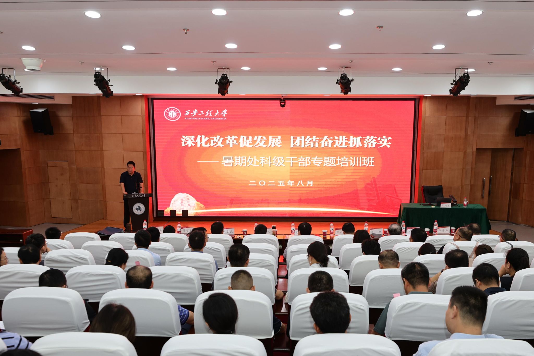 8月17日至19日,我校在临潼校区举办“深化改革促发展 团结奋进抓落实”2025年暑期处科级干部专题培训班,深入学习贯彻习近平新时代中国特色社会主义思想和党的二十届三中全会精神、全国教育大会精神、第28次全国高校党的建设工作会议精神,持续深化干部作风能力提升年活动,推动深入贯彻中央八项规定精神学习教育走深走实,锻造堪当重任的高素质干部队伍,进一步凝聚推动学校高质量发展的力量。校领导马万清、井浩、辛永昌、殷永建、朱永民、戴鸿、夏蔡娟、杨建、张洛红,全校处科级干部、系部主任、专业负责人、院长助理等300余人参加培训。